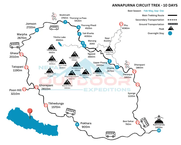At Nepal Outdoor Expeditions, we pride ourselves on delivering exceptional trekking experiences. Our seasoned guides, deep local insights, and commitment to safety ensure that your Annapurna Circuit trek 10 days journey is both memorable and secure. We tailor our services to meet your preferences, providing a personalized adventure that stands apart.